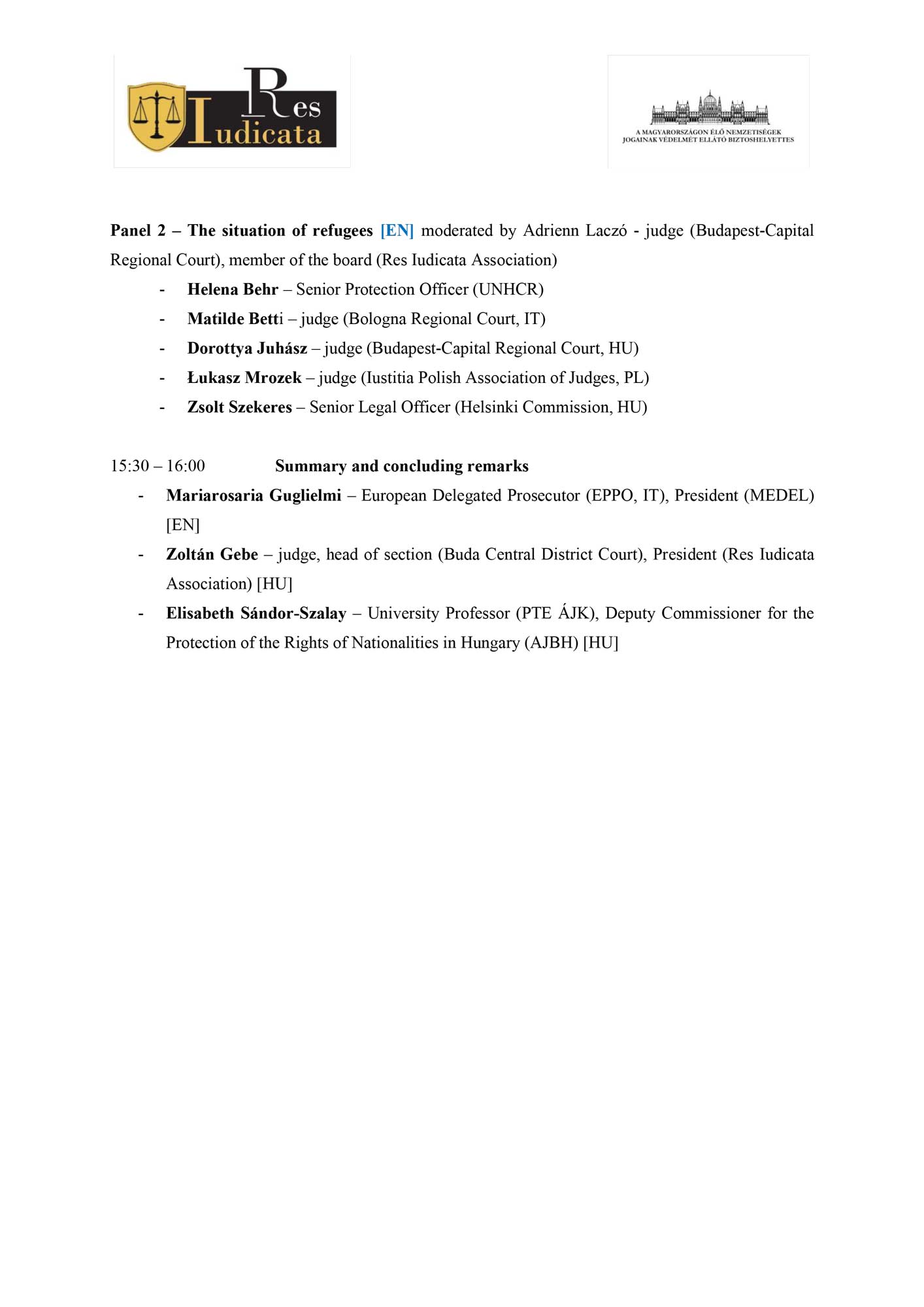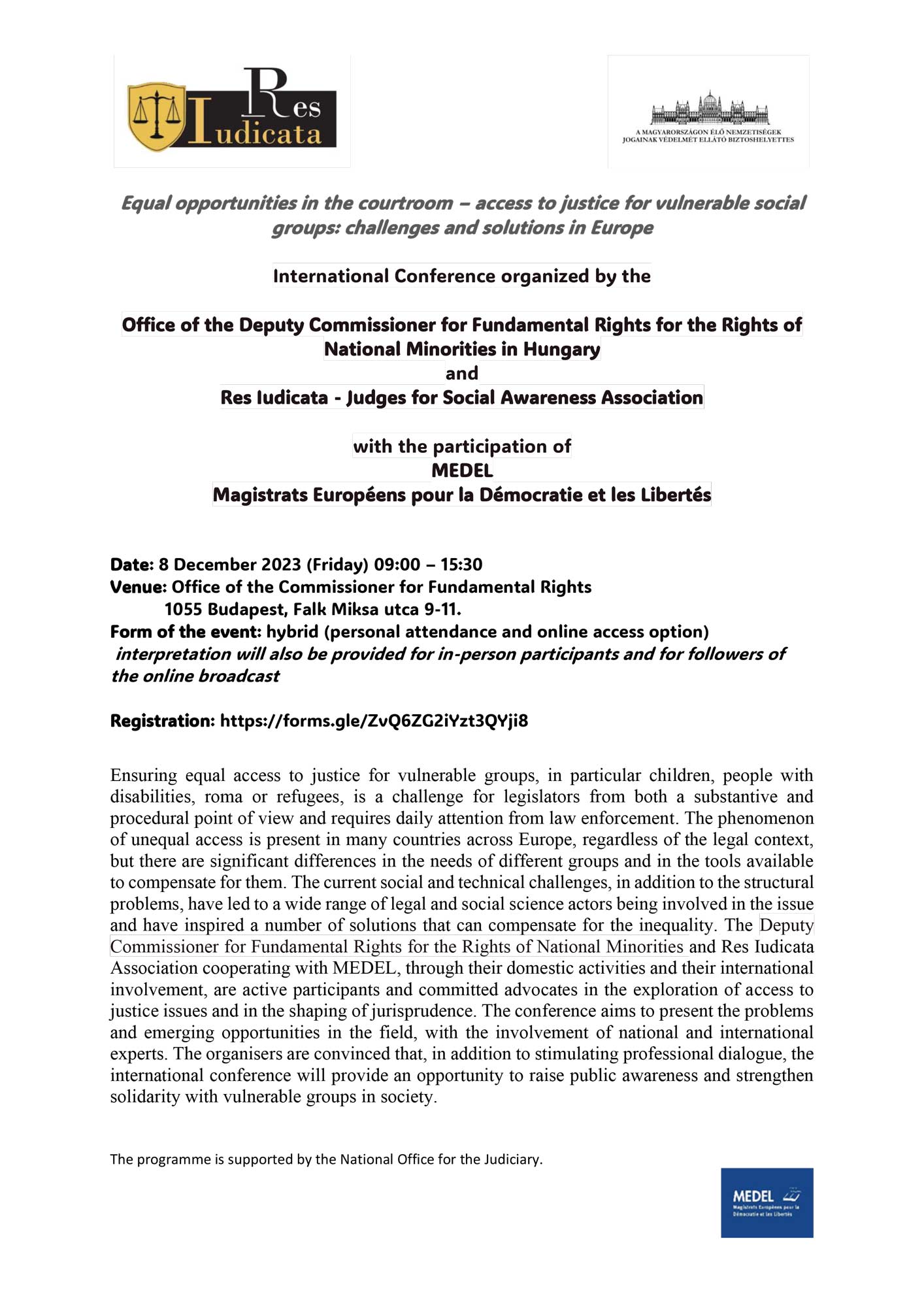 MEDEL participated in the International Conference, organized on December 8th in Budapest, by its Hungarian member association Res Iudicata and the Office of the Deputy Commissioner for Fundamental Rights for the Rights of National Minorities in Hungary
