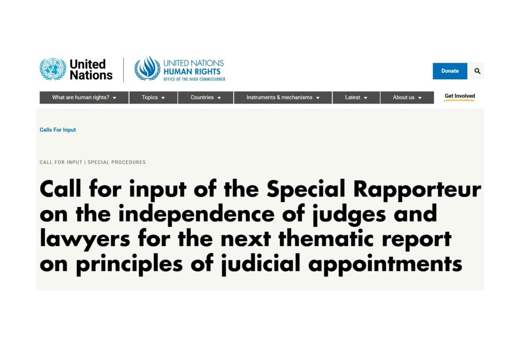 OHCHR | Call for input of the Special Rapporteur on the independence of judges and lawyers for the next thematic report on principles of judicial appointments